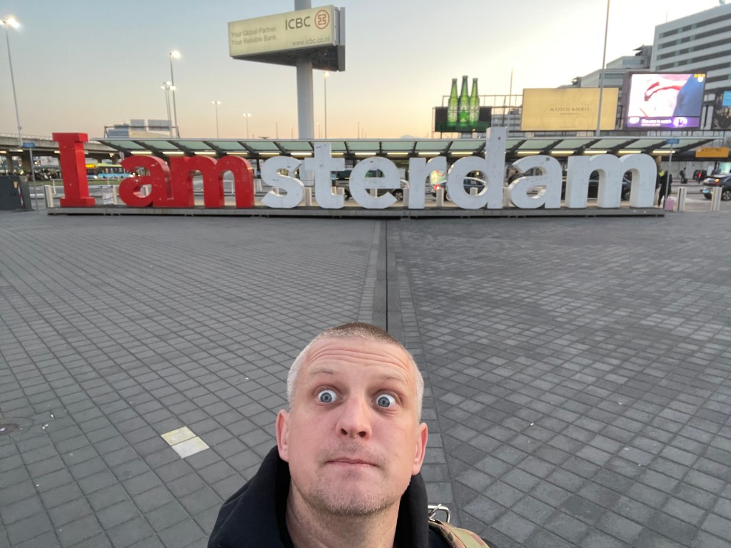 Flight delayed, enough time for a ciggi while Lu is taking a powerwalk