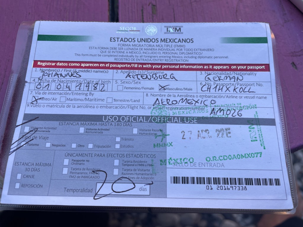 Also on a quick side note here, nobody ever asked us for any temporary import papers nor visa lengths or anything when we reentered Mexico from the States..