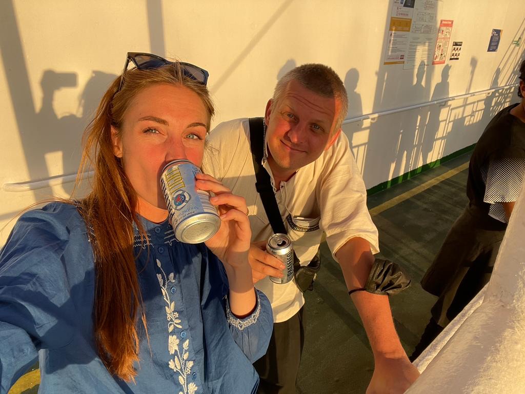 After having explored the boat a bit we felt like we deserved a post trauma evening beer. Back to nice again !