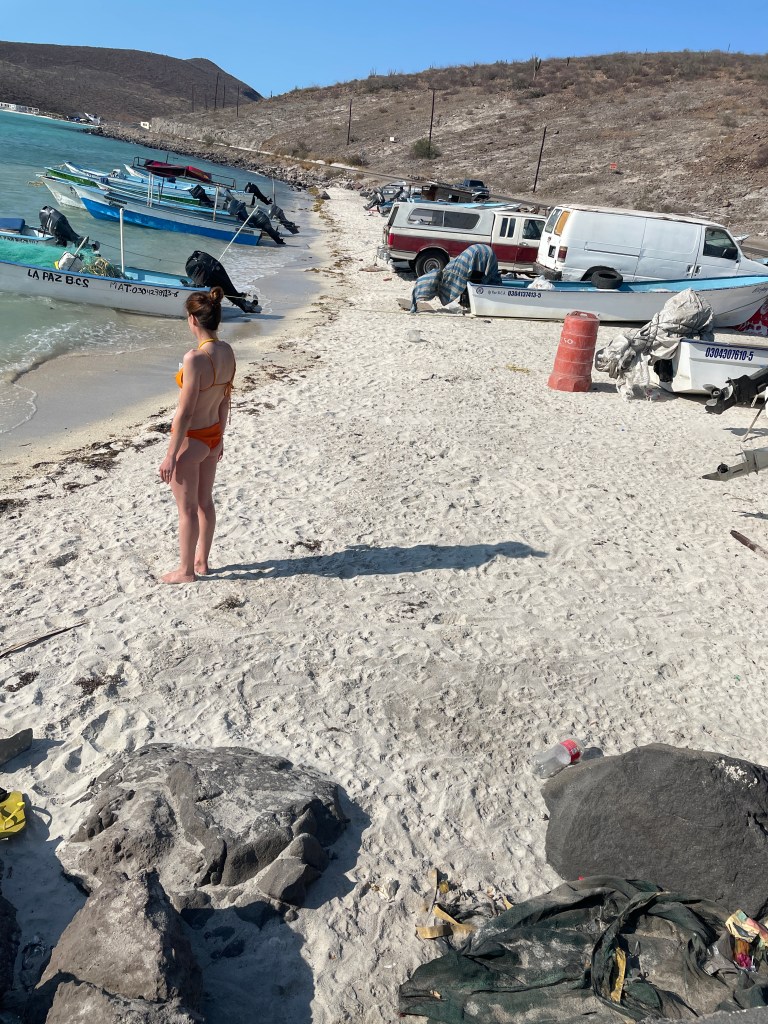 Having arrived 3 hours prior to departure we now had tons of time to kill so we asked if we could exit by foot to take a bath at this enchanting harbour beach.