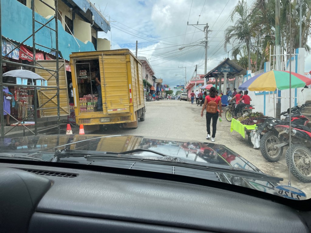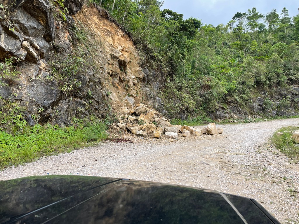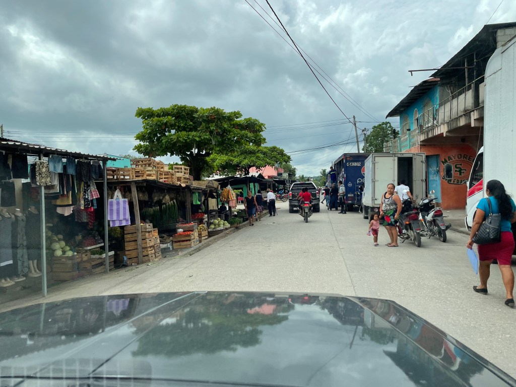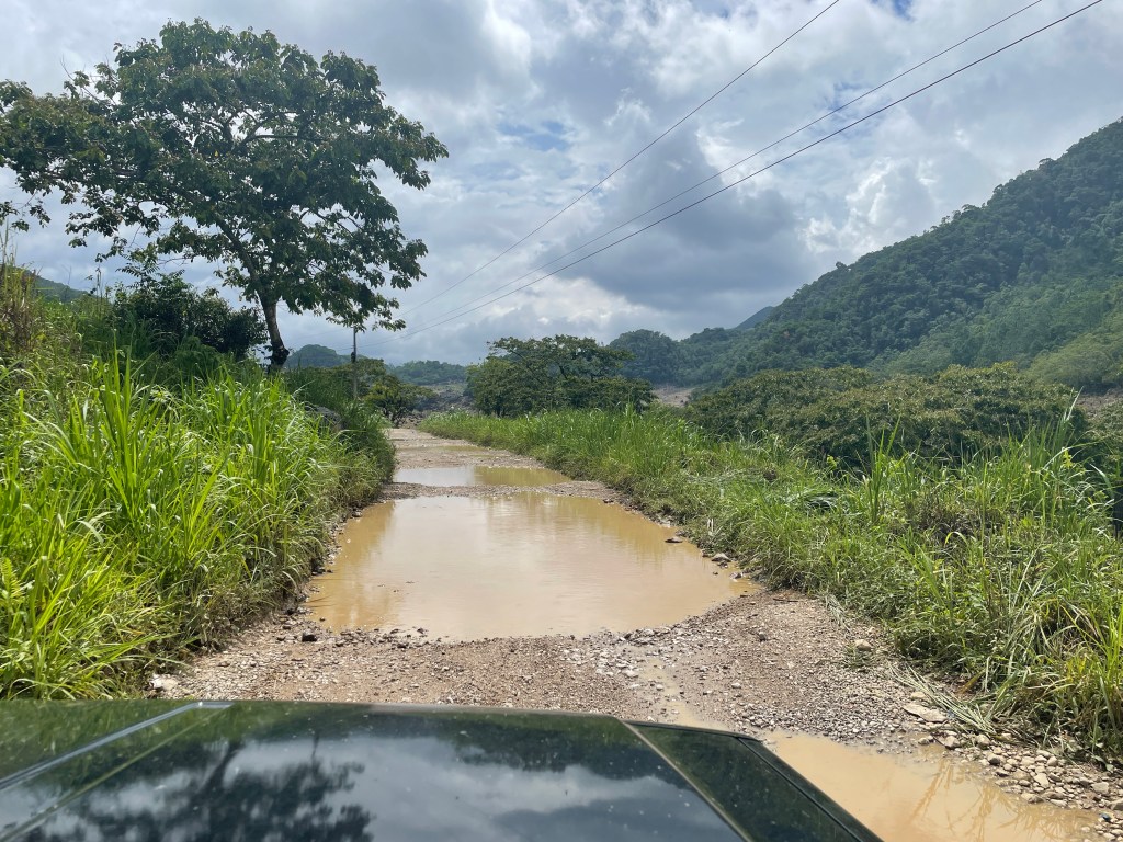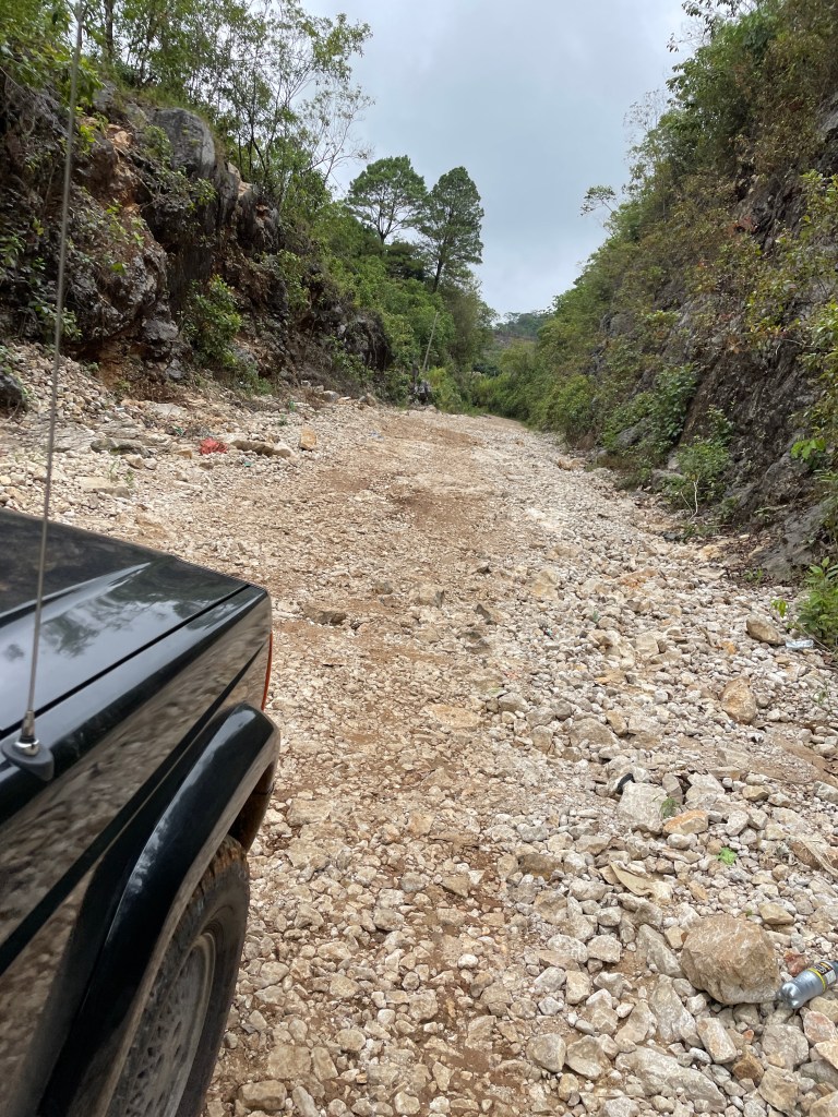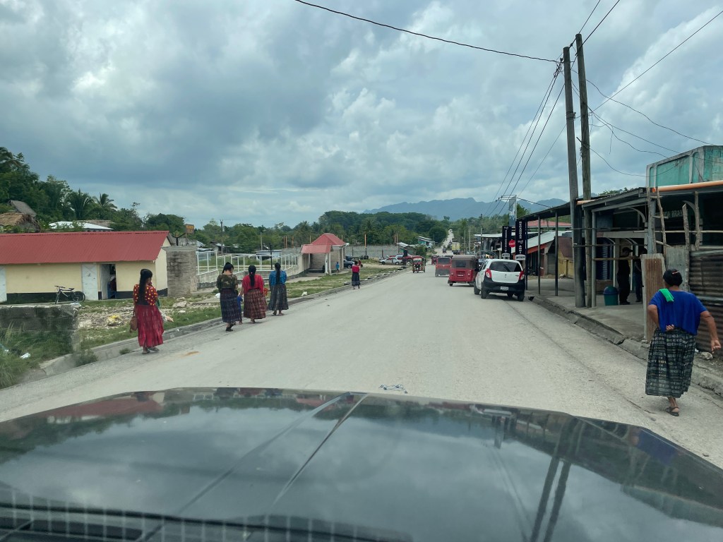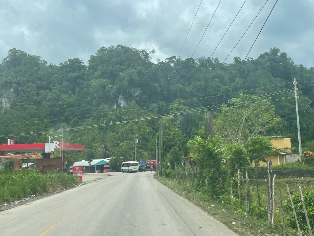 She immediately got rewarded by two guys blocking the road. They didnt want a donation, they wanted straight up money, 400 Quetzales, which is a lot of money around here.The problem was that we did not really have a choice since : firstly you cant turn your car and even if you could, you do not want to drive back for 3-4 hours. But both of us unwilling to give these guys our precious cash we pretended not to have more then a 160 and traded in the rest of the „favor“ for a pineapple some cigarettes and a pack of takis.