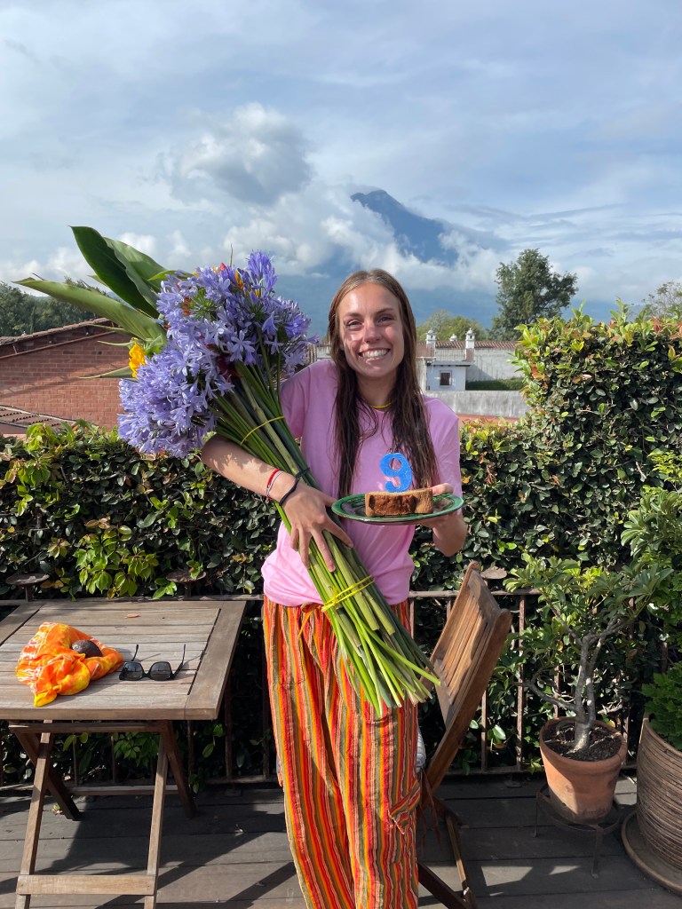 This was a very good spot for Lus birthday. The view of the volcano, mixed with the flowers and a piece of banana bread was quite the treat.