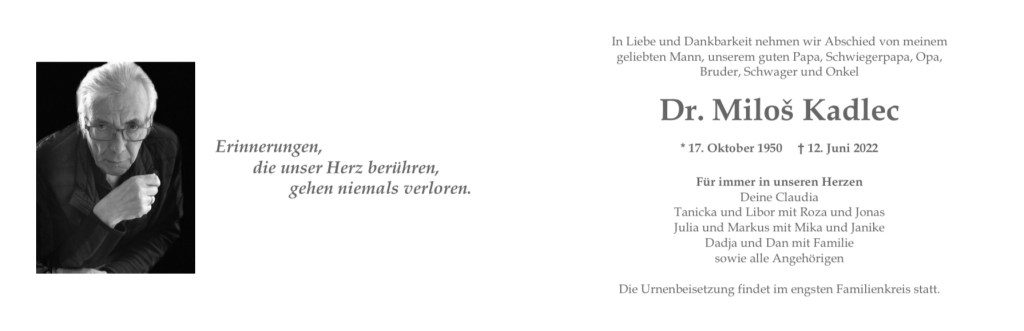 We got notice that my dear uncle Miloš had died on the 12th of June.