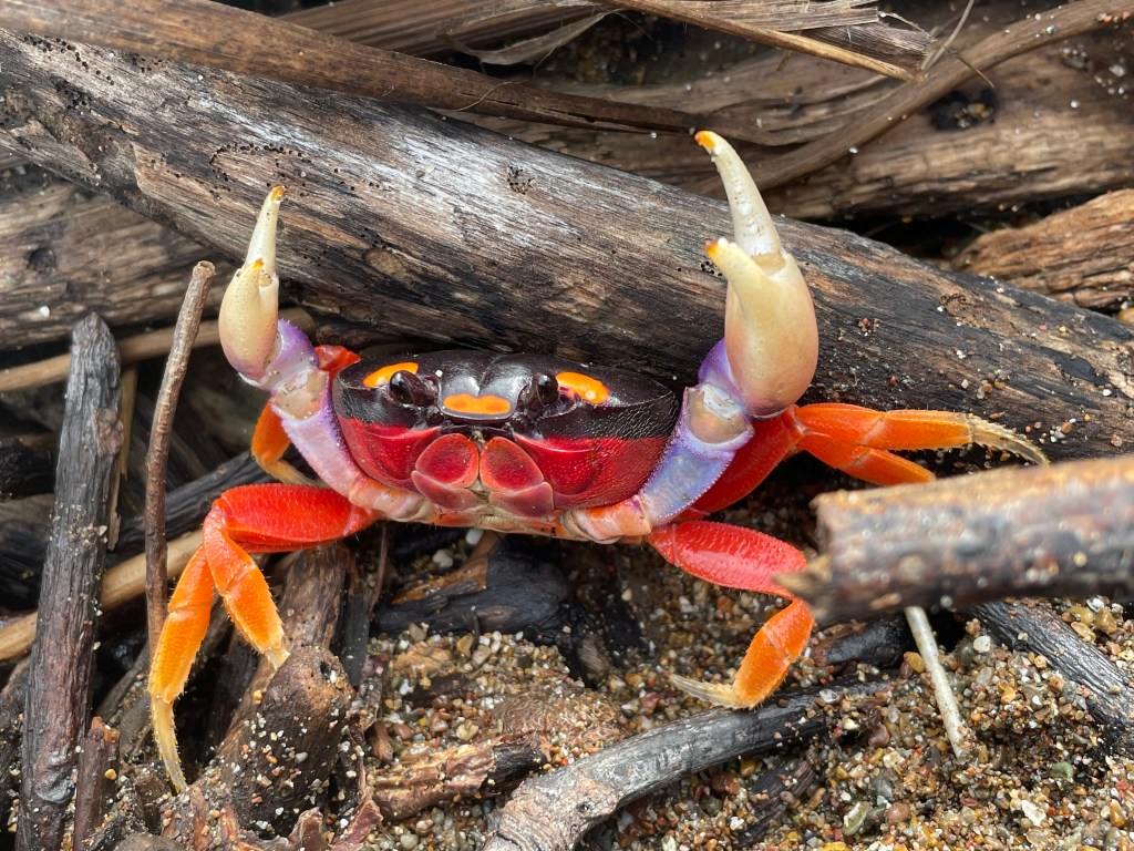 What i did not know is that crabs eat their eggs as well. I could not get a pic of the one that escaped when i got closer. But he was hiding and eating in this hole.