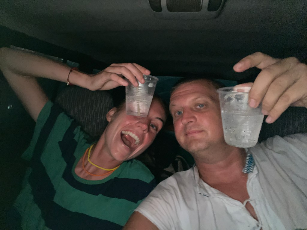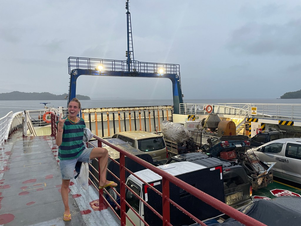 We welcomed the well deserved break by having a couple of beers , and a couple of gin tonics on the ferry, talking to Janine and Fabi in labor and marveling at the unloading storm above us.