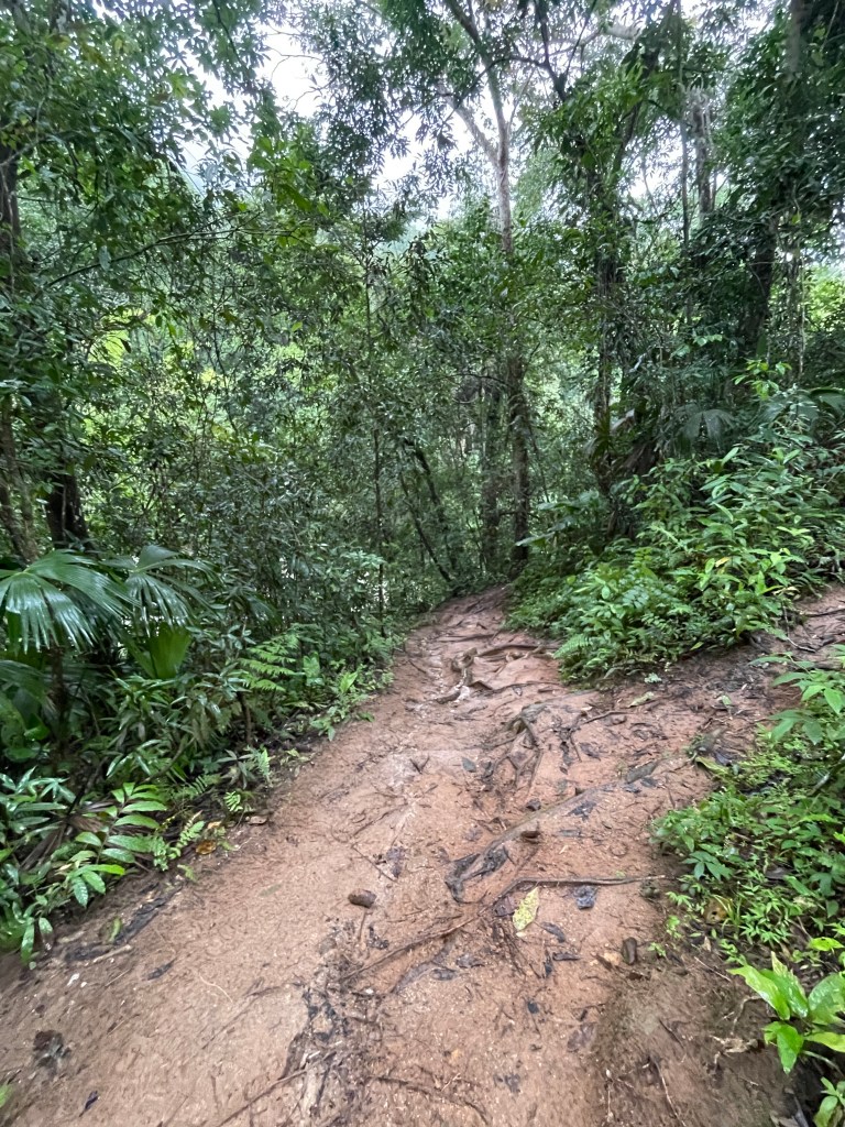 There is many small trails leading off the road and after around an hour or so we decided to just take one of them since we heard water splashing in the distance.