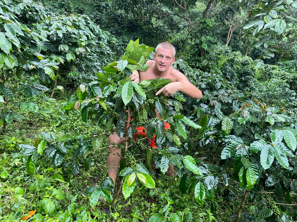 To my delight we also found a tiny coffee field tucked below the jungle canopy.
