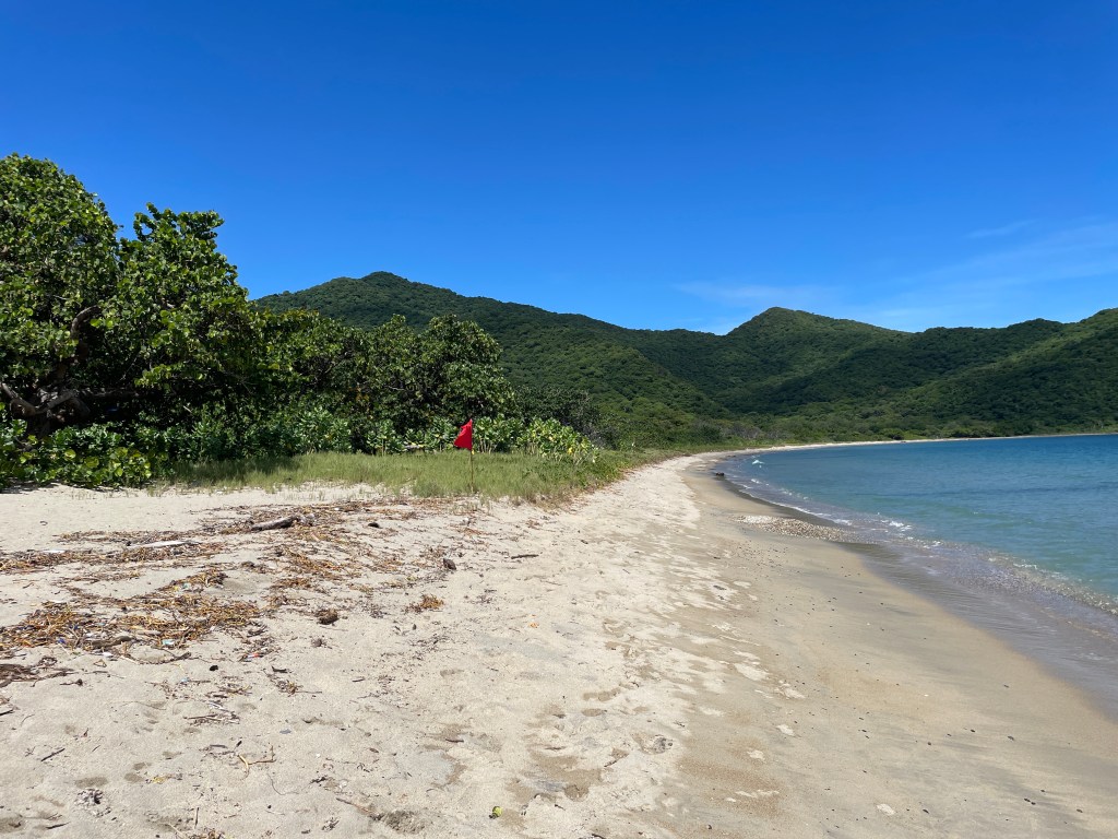 But a red flag to keep you from walking too far onto the dangerous side of the beach. We settled under a nice tree