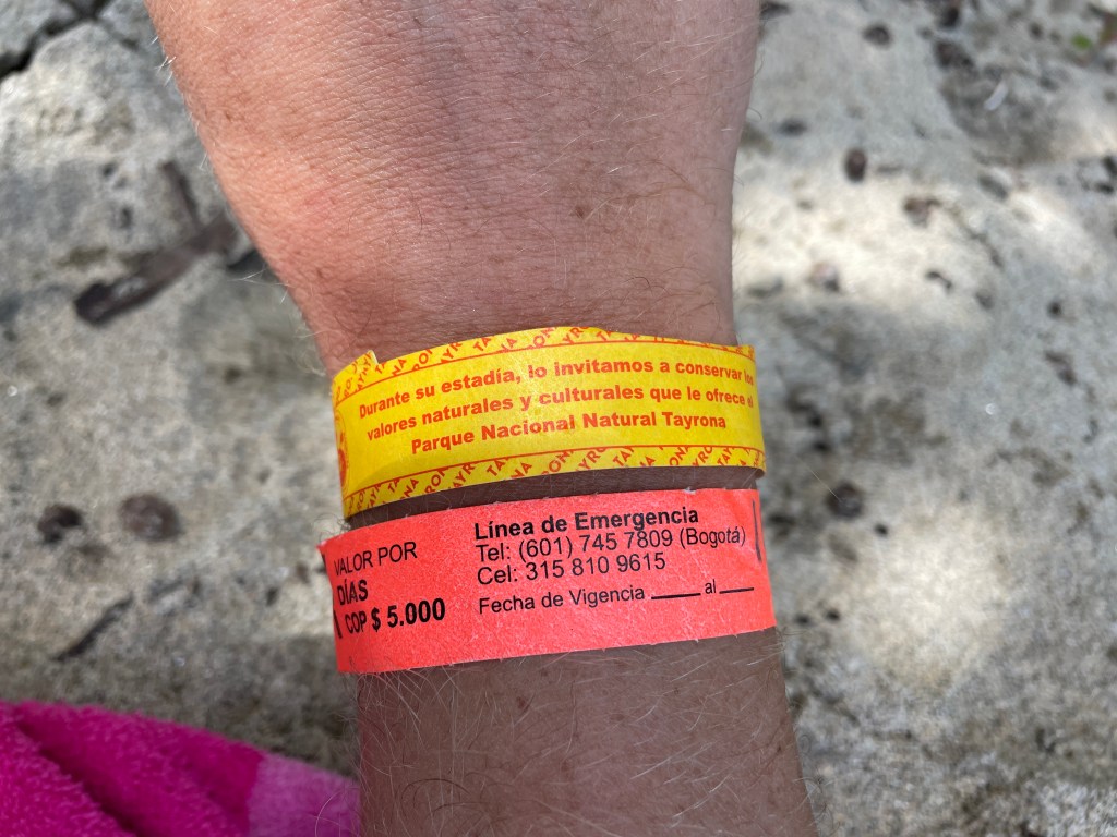 You get little neon bracelets that prove you are a true gringo. I doubt anyone has ever paid attention here but i had a quick look, since i paid for it. The emergency number on the insurance bracelet is from Bogota. Safety first!