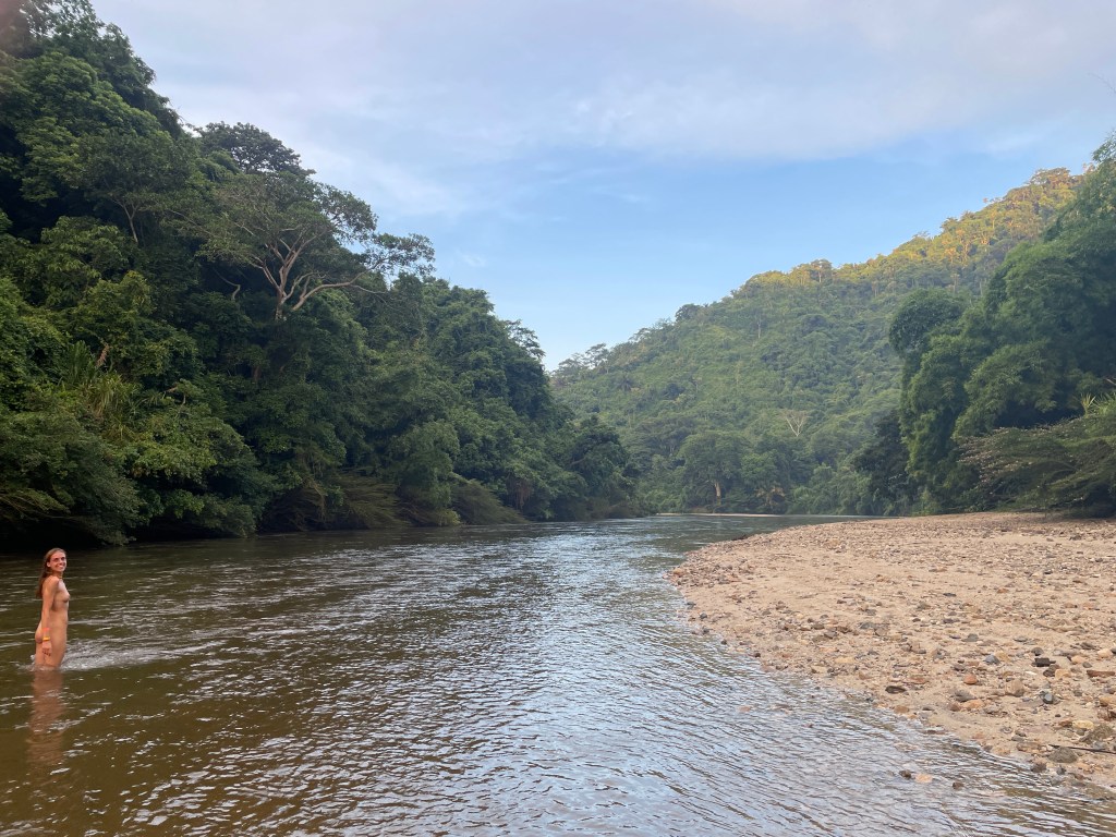 we drove up a very shitty road for a bit to get to a hotel, she had stayed in before. What a place! Tucked into the jungle just by a very nice river, we had to explore first.
