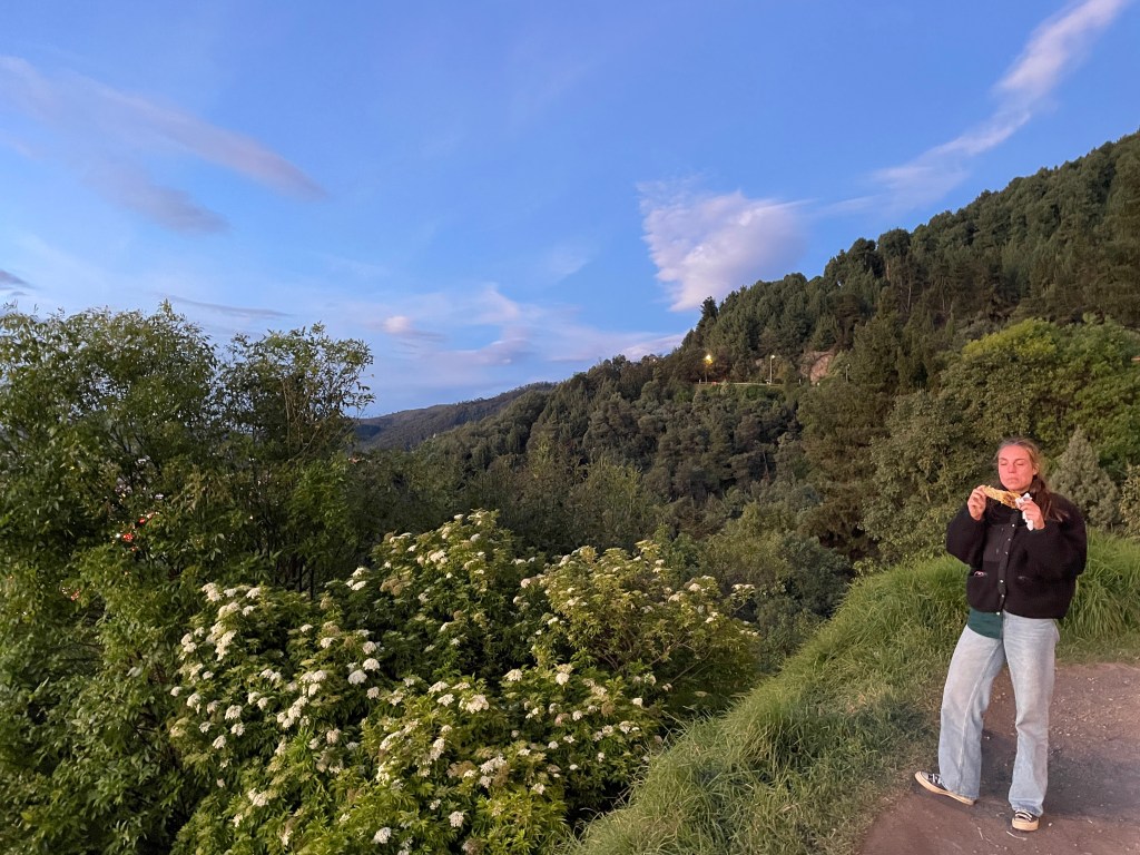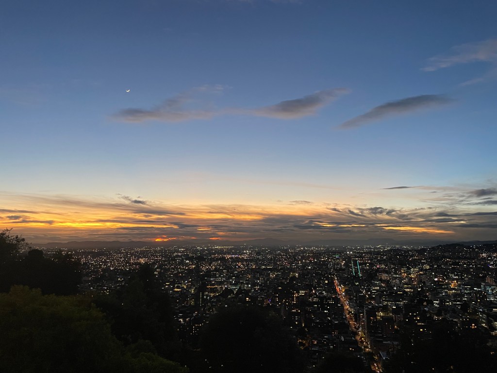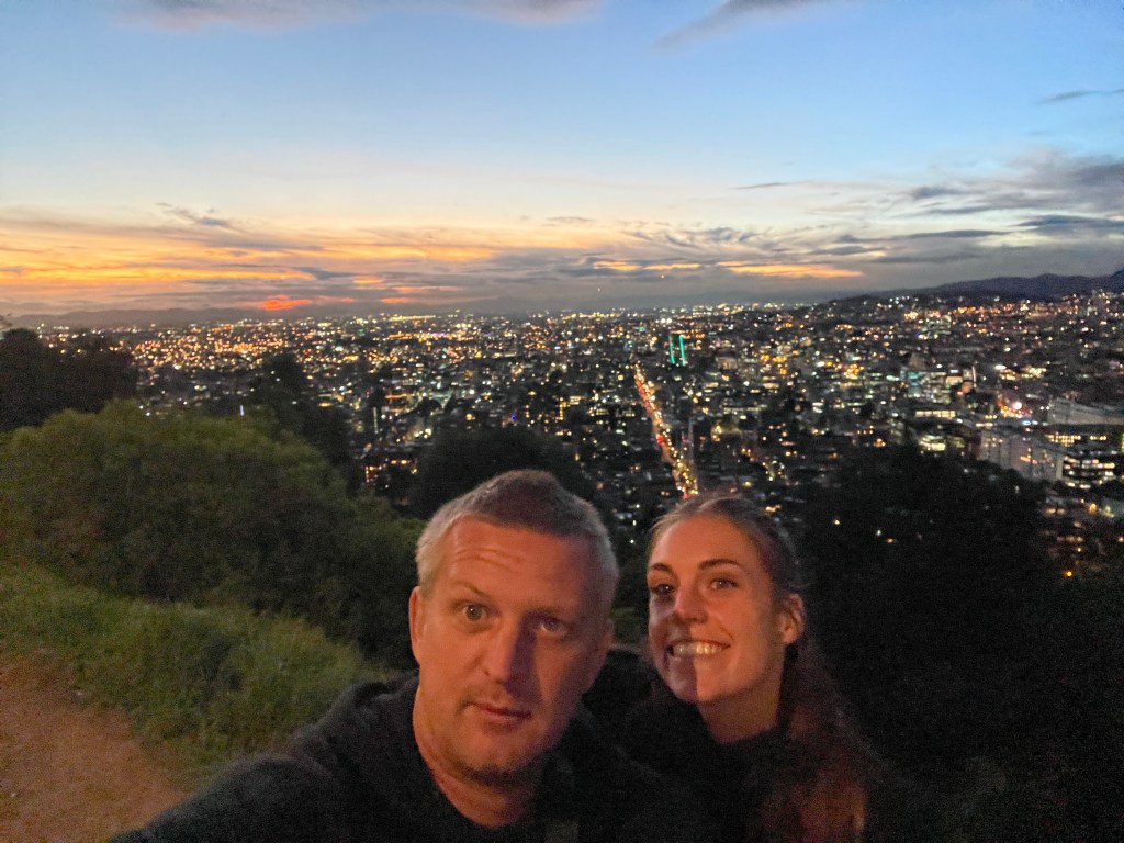 Tired from all the new input we drove up the hills to get a glimpse of the city at sunset. Luckily there was a nice snack station at our curbside mirador.