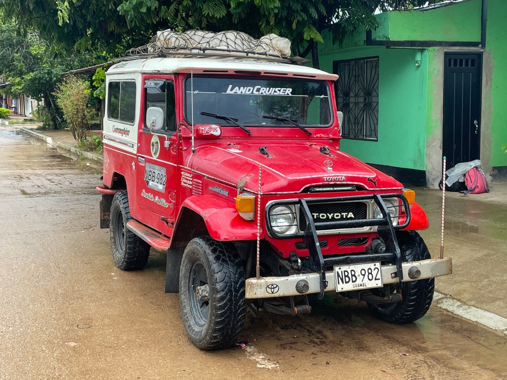 Everybody warned us about the the condition of the roads after La Macarena so we left Jim and hoped on „ La Linea“, the local public transport. Or we tried to. We were supposed to leave at 7.30 but the weather and just the fact that we were in Colombia delayed the whole thing by two hours. That gave us time for coffee, a quick stroll through the rain,